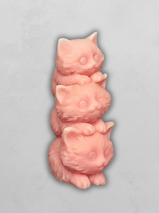 Questa candela non è solo una fonte di luce, ma una vera e propria scultura d'arredo che celebra la dolcezza e la gioia domestica. Realizzata con cura artigianale, la sua forma ritrae tre adorabili gattini impilati in un tenero abbraccio: un tributo raffinato alla compagnia, al calore del focolare e alla serenità.